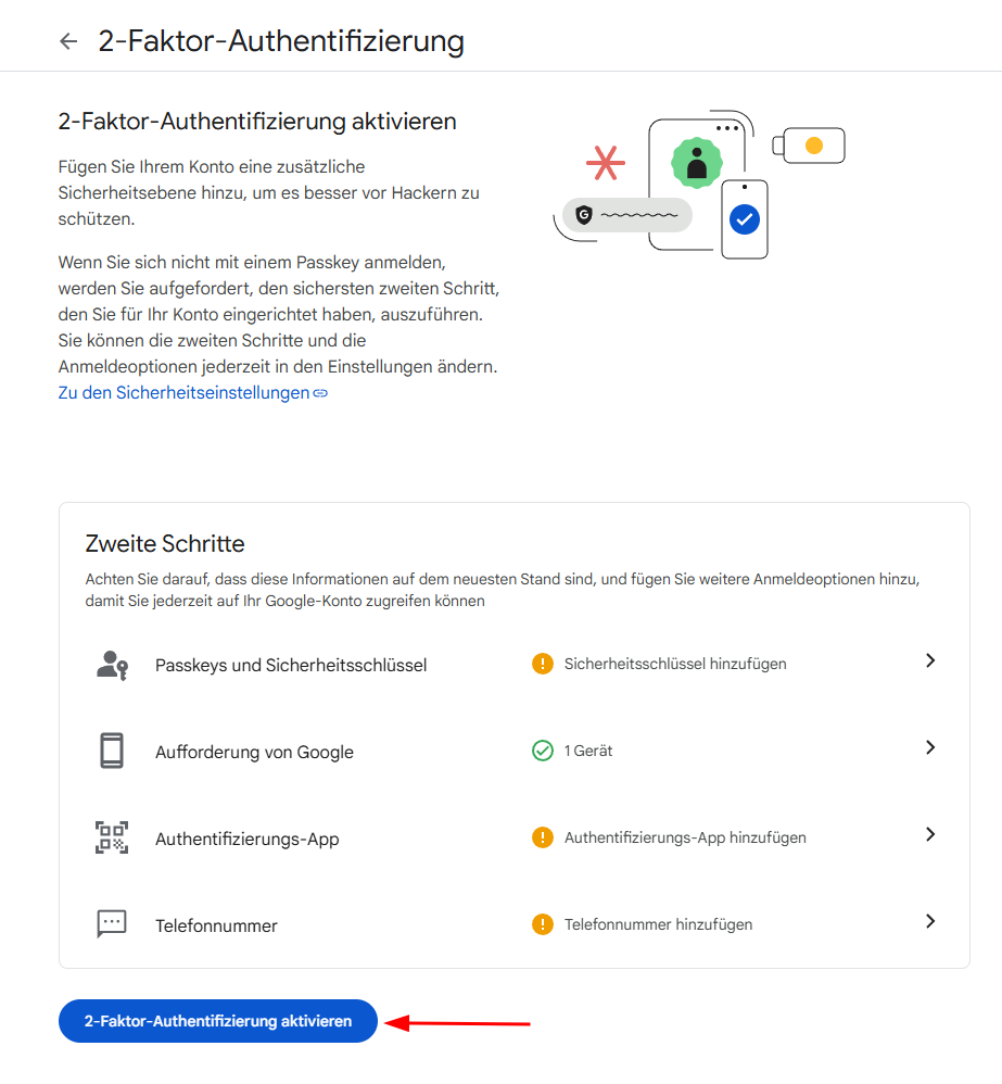 2. Voraussetzung: 2-Faktorauthentifizierung ist im Google Account aktiviert